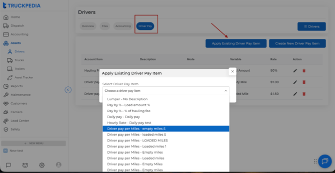 STEP 2 — Driver Pay Manager → Driver Pay Items