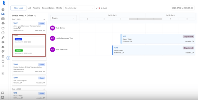 - On the left side, you’ll see open loads (not yet assigned to drivers).