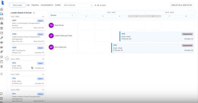 With Dispatch V3 (version 3), the Calendar View is redesigned to be clearer and easier to use. You can see all your loads in a single place, sort stops more easily, and assign drivers with fewer steps