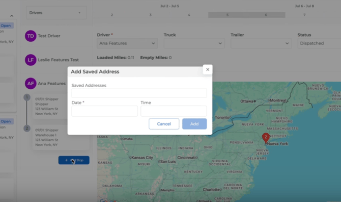 - Optionally, add a stop after delivery if Driver 2 is picking up a new load