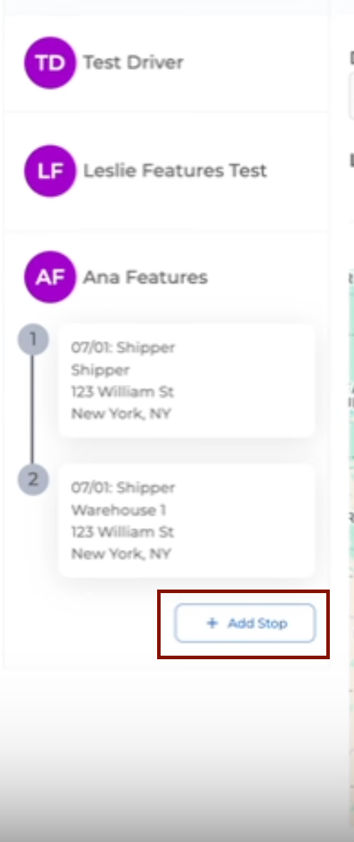 - Click on a load (e.g. Load 1007 or 1008) to view its stops.