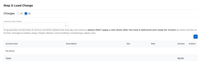- Confirm that Load Charge V2 is active by checking the Charges tab. It will look different from Load Charge V1.