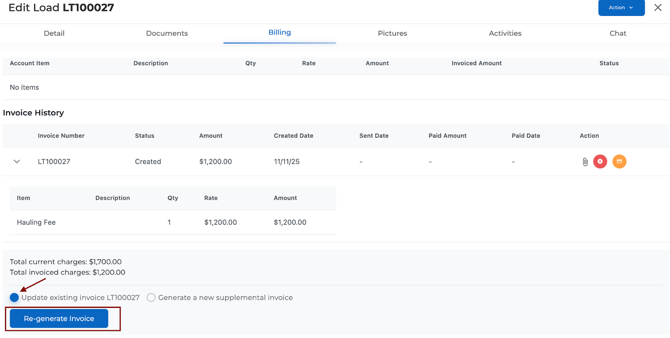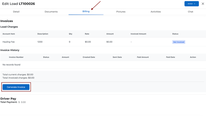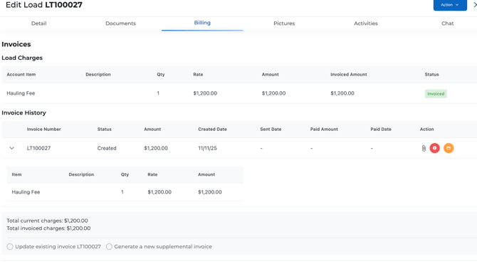 - Go to the Billing tab inside the load (not Accounting).