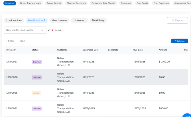 To use Invoice V2, Load Charge V2 must be enabled on your account. Below is a step-by-step guide to generating invoices using Invoice V2 inside Truckpedia.