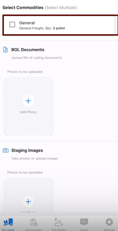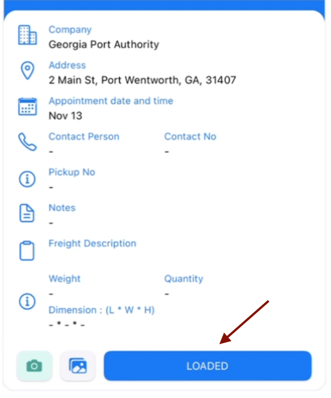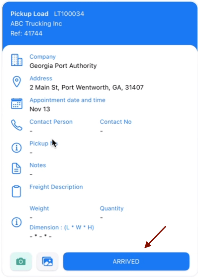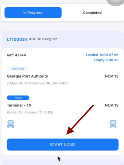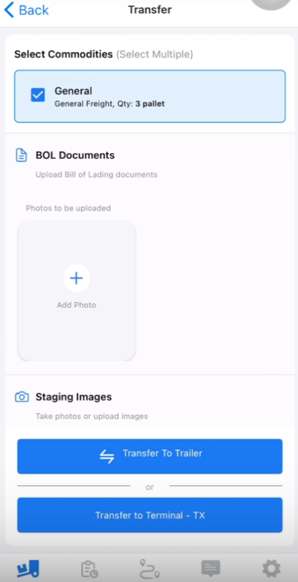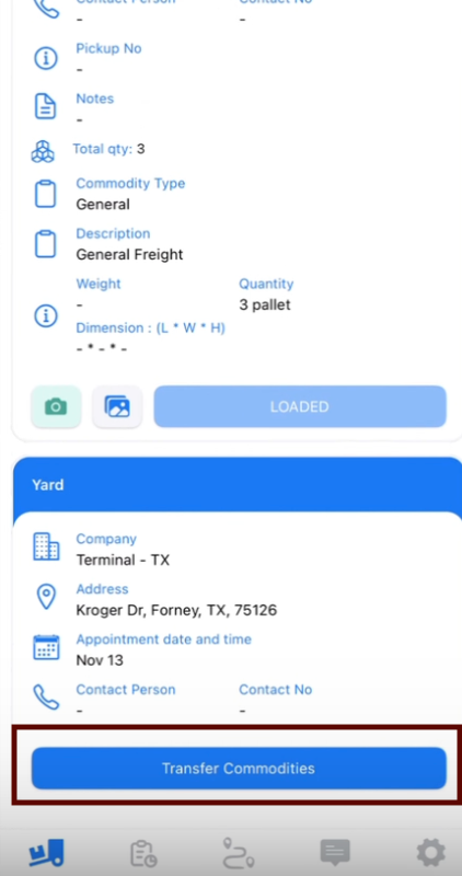 At the yard, the driver will see Transfer Commodity instead of Arrived/Unloaded.