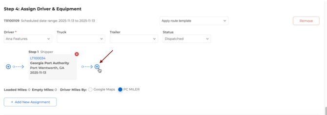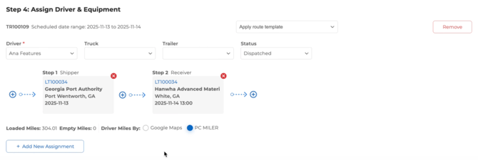 - In Step 4 – Assign Driver & Equipment, you will see the trip sequence.