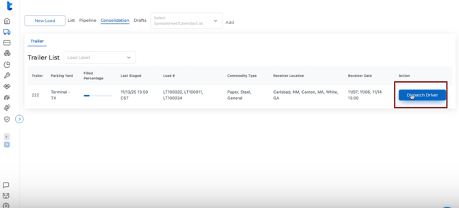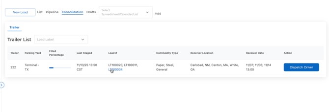 The driver will receive one consolidated trip with all the receivers for all loads previously dropped into that trailer.