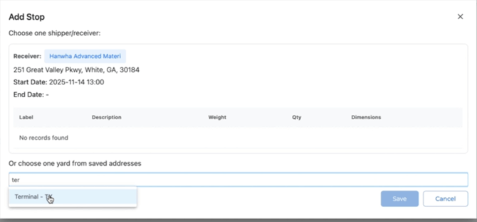 If your driver needs to drop the freight at a yard before the receiver, you must manually change the routing.