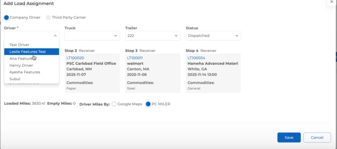 Dispatch V3 (version 3) improves how you manage shared or split loads. From the updated Calendar View, you can now assign individual stops from different loads to different drivers, making drop-and-hook, relay, or LTL scenarios much easier to handle.
