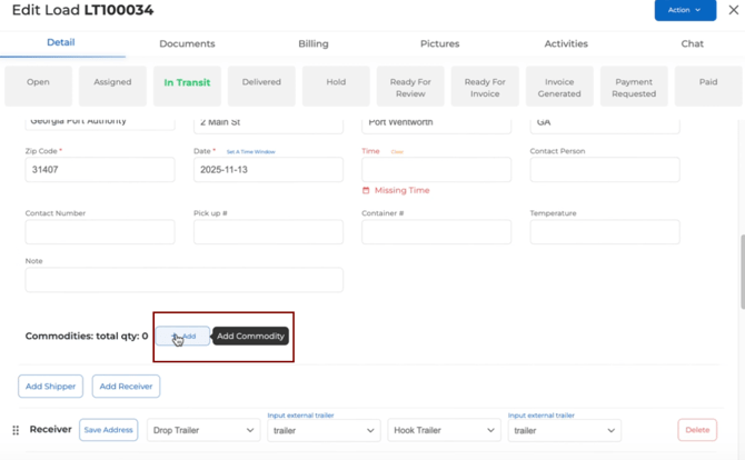 - Scrolling down to receiver you will see the commodity added automatically by the system