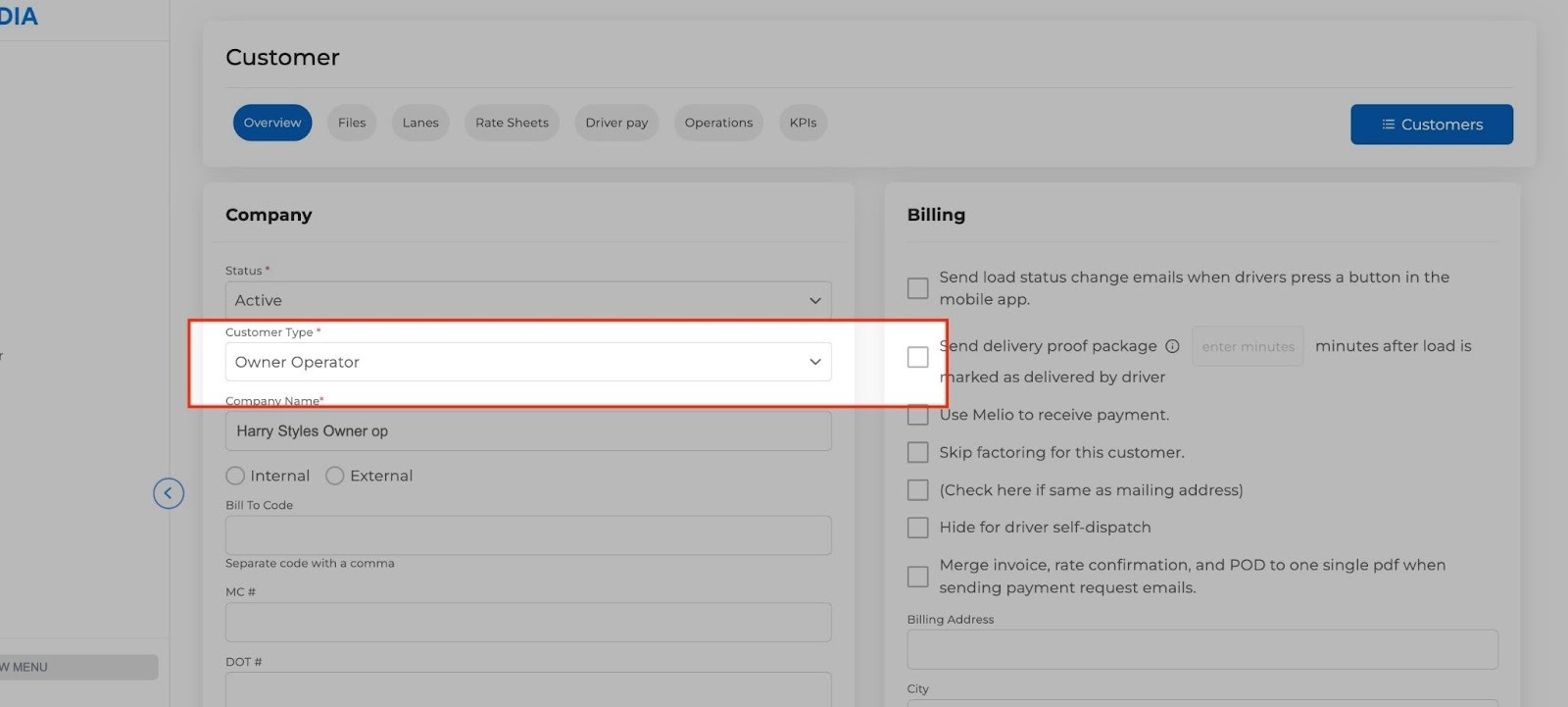 - Owner Operators are now created under Customers
